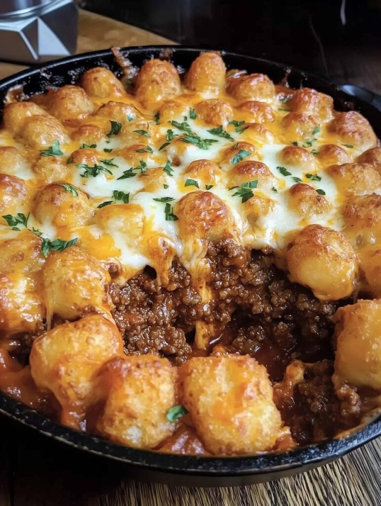 This cheesy tater tot casserole with ground beef is the ultimate comfort food — packed with savory seasoned beef, a creamy sauce, crispy golden tater tots, and melted cheese. It’s …